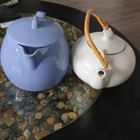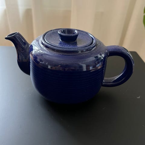 Myydään tumman siniset kahvikannut/teekannut. Isomman kyljessä ja kaatonokan kärjessä pienet lohkeamat (kuvissa). Siistit, käytetyt.
