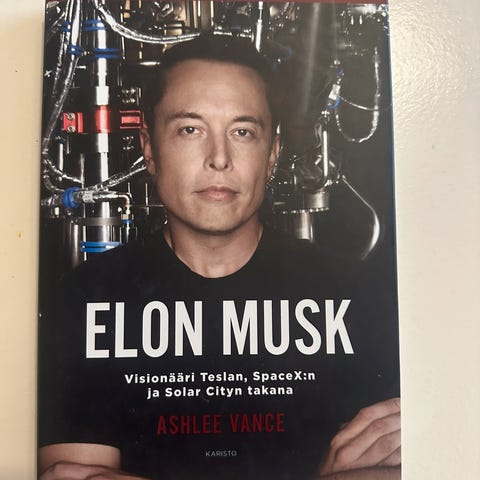 Ashlee Vance: Elon Musk. Tesla, SpaceX, And The Quest for a Fantastic Future. Kovakantinen. Kansipaperit. Harper Collins 2015.