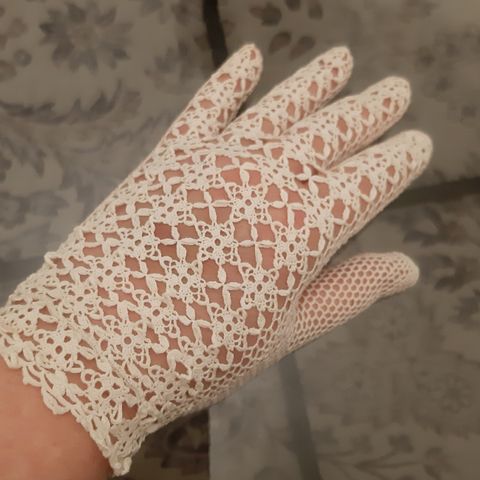 Uudet valkoiset käsineet, virkatut, sopii koolle 7