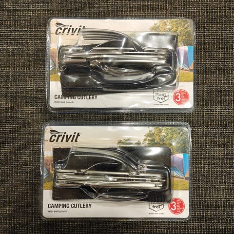 2 sarjaa ruostumatonta terästä olevat retki aterimet. Koko 18cm pitkät.