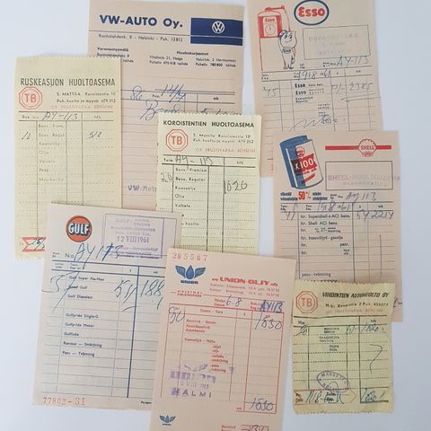 Huoltoasema tavaraa, Esso, Kesoil, Union, TB
