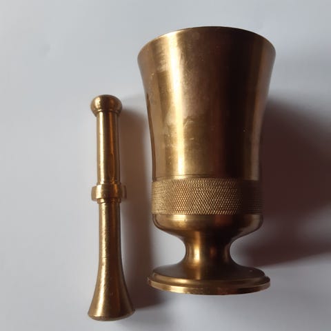 Nyt myynnissä käyttökuntoinen mortteli ja survin. Kyljessä lukee KELLOKOSKI-MARIEFORS