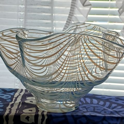 Signeeraus M-RO. Suomessa tehty, ilmeisesti Raumalla. Uniikki. Pituus 26 senttiä, Suurin leveys 19 senttiä. Suurin korkeus 6 cm. Ehjä. Hienoa, hyvää työtä.