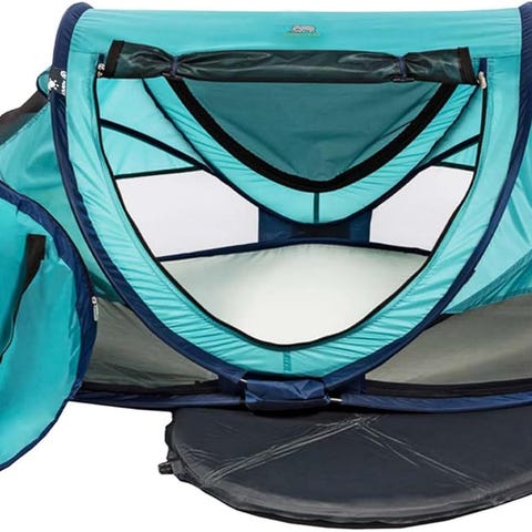 Helppo pystyttää 2 minuutissa – yksinkertaisesti avattuna matkasänky muuttuu kompaktista 32 x 8 x 32 cm koosta valmiiksi suojaksi, jonka mitat ovat 98 x 60 x 32 cm.