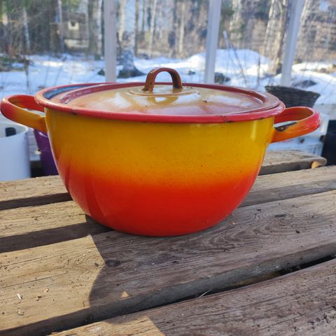 Hyväkuntoinen emalikattila, 3l. Nouto, postitus, tai kulkeutuu omien menojen mukaisesti sovittaessa Vääksy, Lahti