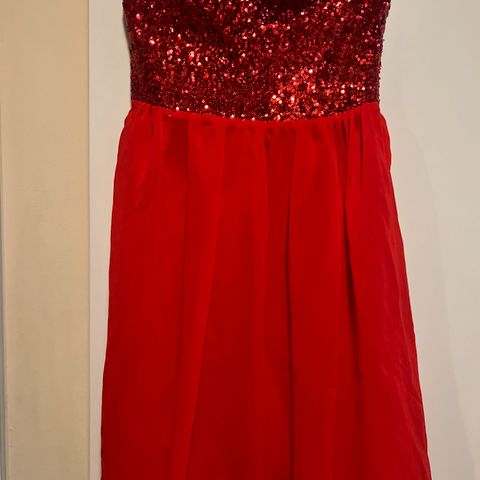 Myyntiin kaunis punainen naisten hieman juhlavampi mekko. Edessä kivat yksityiskohdat. Olen itse tätä käyttänyt vain muutaman kerran ja sen jälkeen säilytetty kaapissa.