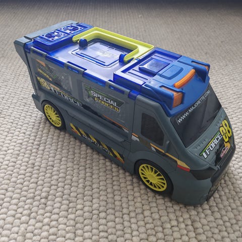 - Majorette Tokmanni rekka on 20 cm pitkä, siinä on irrotettava nuppiosa ja vapaasti pyörivät renkaat.