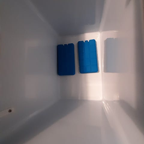 Vihreä kylmälaukku kaksi kerrosta pienempi ylhäällä ja toisessa osassa enempi tilaa ylä osaan vaikka kylmä kallet päälikansi 28,5 centtiä pohja laukussa on remmi jonka saa pidennettyä.