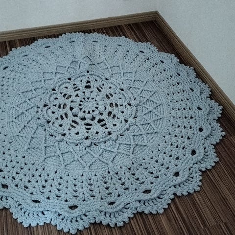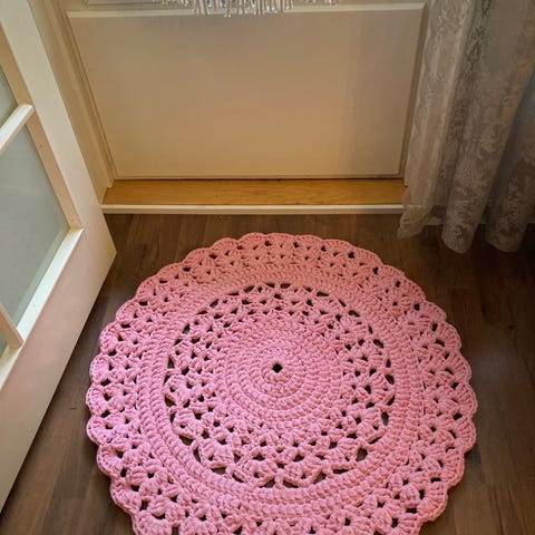 Viininpunainen, ontelokuteesta virkattu matto. Halk. n. 110 cm.
