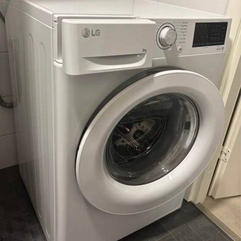 LG edestä täytettävä pesukone, väri valkoinen. Pesukoneessa on etuluukku ja digitaalinen näyttöpaneeli ohjelmien valintaa varten. Sopii kodin yleiseen pyykinpesuun. Tarkemmat tekniset tiedot, kuten kapasiteetti, mitat ja energialuokka, eivät käy ilmi ilmoituksesta.