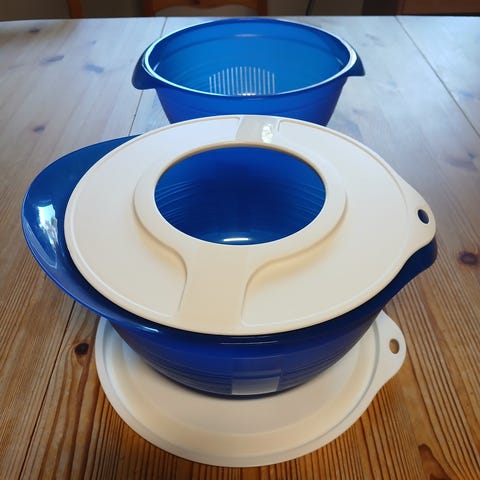Tupperware. Vatkauskulho Bro Baking tilavuus 1,5 L kannessa vatkausrengas roiskeet pysyy astiassa sähkövatkaimella vatkatessa hinta 25 eur ja