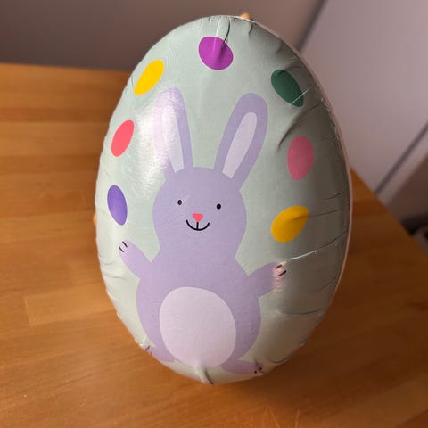 Yksi iso avattava muna, pituus 12 cm, toisella puolella viimeisen kuvan mukainen vaurio. 4 pientä ripustettavaa munaa, pituus 5 cm.