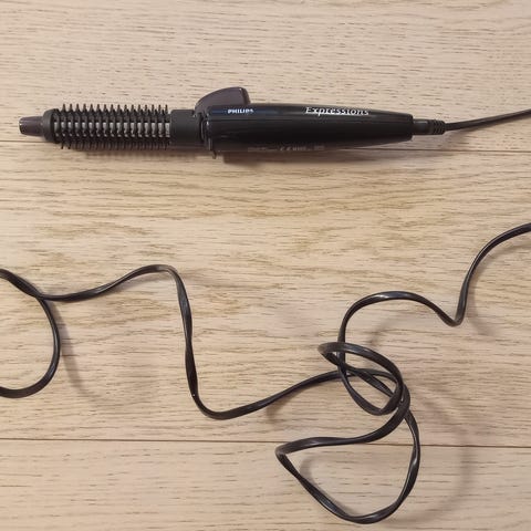 Philips kiharrin. Vähän hiuslakan peitossa. Lähtee varmaan puhdistamalla. Toimii.
