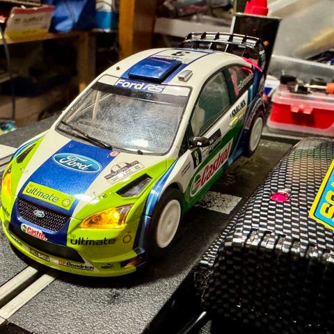 Radassa paljon paloja (jokainen alkuperäinen tallella), ainoana miinuksena = autojen moottorit ovat kuolleet vuosien kuluessa laatikossa istuessaan. (Rata n. 20 vuotta vanha) Toisen auton eturenkaan "tukivarsi" on murtunut / katkennut.