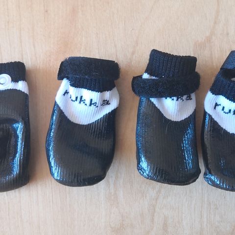 Käytetyt kumipohjaiset tossut pienelle (tai toy) koiralle.