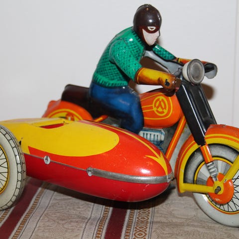 Sivuvaunu moottoripyörä 60-luku CCCP peltinen Neuvostoliitto vanha 22cm