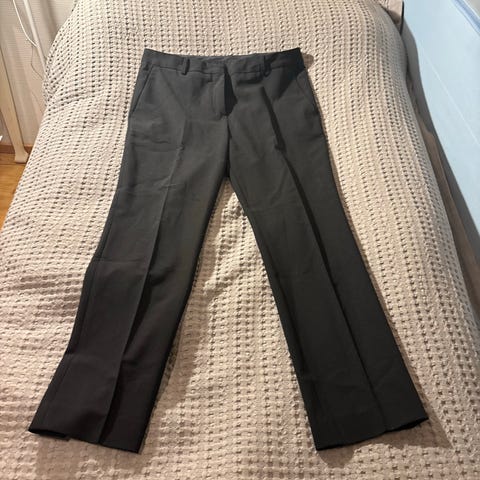 Vain pari kertaa käytetyt Acnen korkeavyötäröiset chinot. Laadukasta paksua, istuvaa puuvillaa, väri harmaanmusta. Koko 34, mutta menee myös kapeavyötäröiselle koolle 36, sillä lantio-reisialue on hieman väljempi.