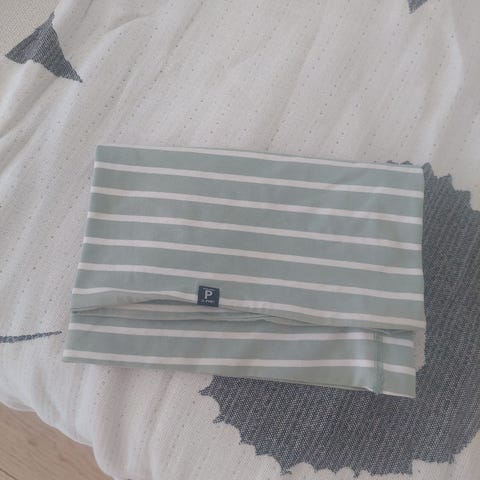 Mintunvihreä raidallinen tuubihuivi kevään/syksyn ulkoiluihin.