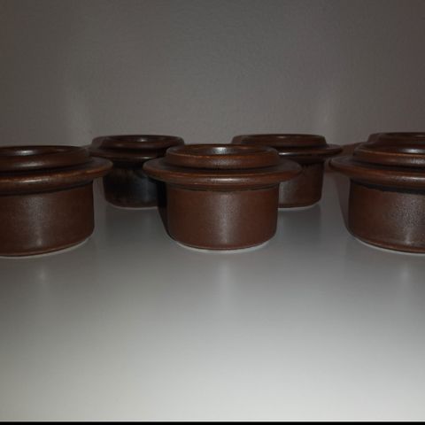 Tarjolla on neljä Arabian Ruska -sarjan munakuppia, jotka ovat osa Ulla Procopén suunnittelemaa ikonista vintage-astiastoa. Ruska-sarjan maanläheinen lasitus tekee jokaisesta kappaleesta yksilöllisen ja ajattoman.