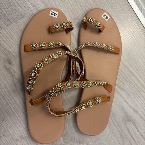 Valko/hopearaidalliset sandaalit. Jousttava kuminauha päällä. Uudet. 42