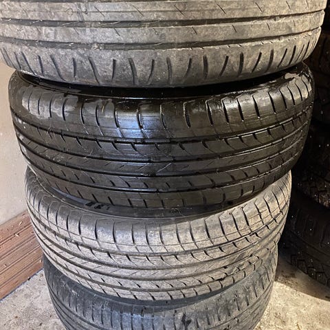 Myydään kuvan autonrengassarja pomarkussa.Olleet opel omega farmarissa.
