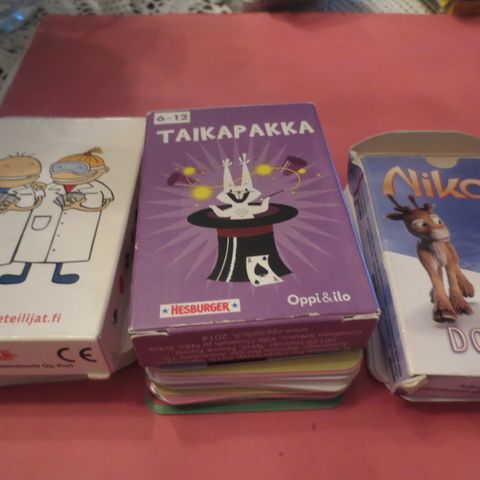2 Pakkaa Pelikortteja, Taikapakka, Risto Räppääjä, 32 korttia - säännöt, Taikapakka 30 korttia - ohjeet, kortit hyvät