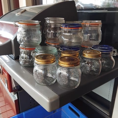 Myydään 2kpl tälläsiä lasipurkkeja. maksaa yht 10e