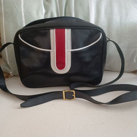 musta-vaalea logokuvioinen laukku