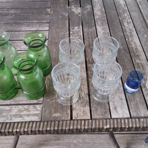 1 normaalikokoinen juomalasi ja 4 snapsilasia. Kaikki yhteensä 10 e. Muutoin 2 e /kpl