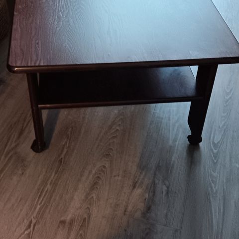 Valkea puinen sohvapöytä.