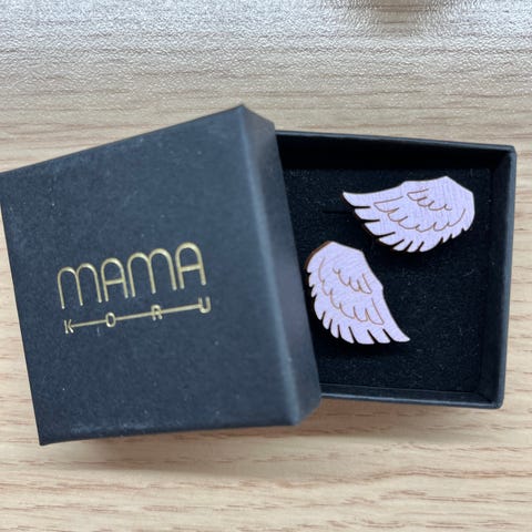 Myyn käyttämättä jääneet Mama koru puiset korvikset ja riipus ketjulla.