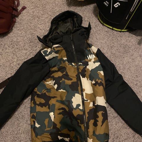 Takissa on valkoisissa hihoissa pari hyvin pientä tahraa. Pesulaput leikattu pois.