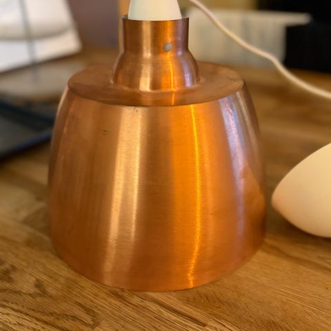 New Worksin kattovalaisin, materiaalina terrakotta. Näitä on myynnissä kaksi kappaletta, hintana on yhden lampun hinta. Mukana ei tule kattokupua, kuten ei uudenkaan valaisimen mukana, mutta uuden kattopistokkeen saa erillisenä mukaan. Voin myydä valaisimet yksittäinen tai yhdessä.