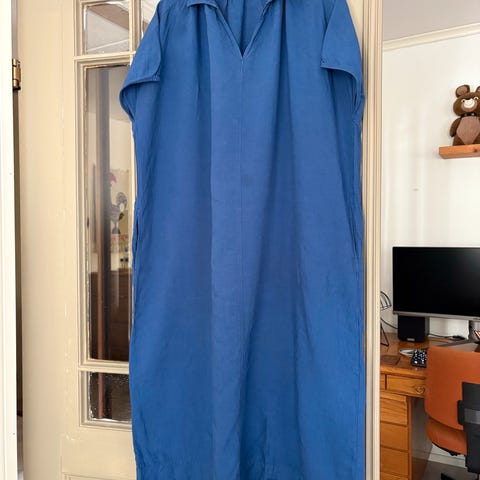 Nuden värinen pellavamekko, jossa mekko. Käyttämätön, helma rypistynyt säilytyksessä.