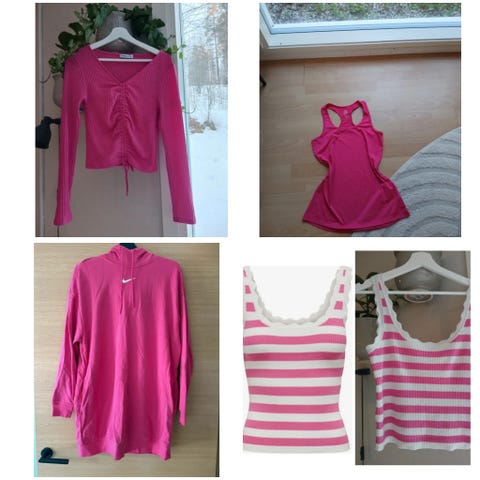 Ihana pinkki valkoinen raidallinen loppuunmyyty JDY nanna neulottu ribbitoppi toppi raitatoppi S - M kokoiselle joustavaa materiaalia Maksoin tästä itse 25 euroa