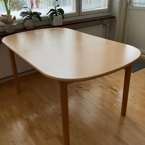 Iso ja painava Maskun ruokailupöytä 6 delle, jos päätyihin laittaa niin mahtuu kyllä 8 samanpöydän ääreen