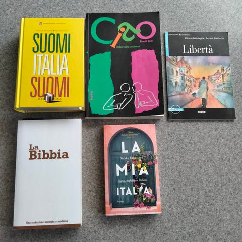 Annan myös italian kielen keskustelutunteja etänä, kirjastossa, esim. ulkona puistossa säävarauksella.