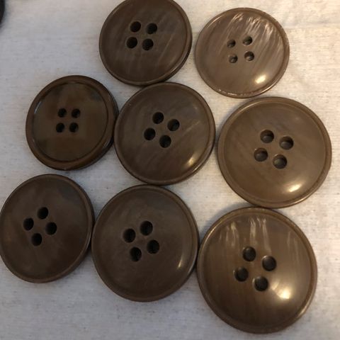 Kuvan mukaiset kovamuoviset napit. Koko 15 mm.