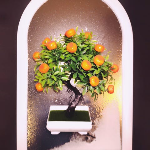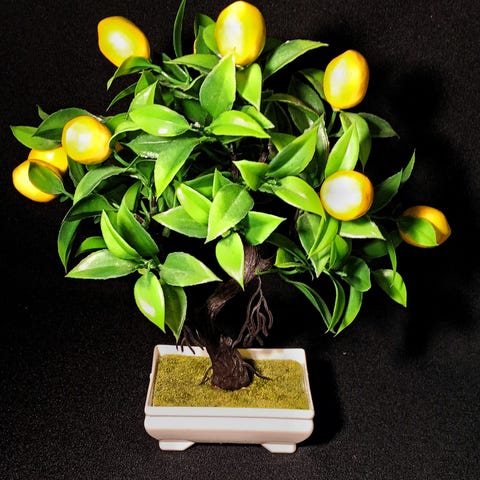 Tuo raikkautta kotiisi pienellä muovisella bonsailla "Mandariinipuu"! Helppohoitoinen ja kaunis koriste kotona tai toimistossa. 🍊✨