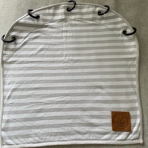 Kääriytyy tarroilla ylös ja alhaalla narut jotta saa ilvamammin kesällä. Tarrat kuluneet mutta toimii vielä, renkaat repsottaa osittain. Aran värin vuoksi saattaa olla pieniä käyttövärjäymiä, silmään ei kuitenkaan osunut mitään isompaa. Kuitenkin vielä käyttökelpoinen vaunujenverho.