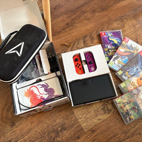 Nintendo Switch Oled Pokémon Scarlet & Violet Edition konsoli. Model 2022. Pelejä ja lisäohjaimia myynnissä erikseen. Nouto Joensuusta tai postitus, postikulut 10 e.
