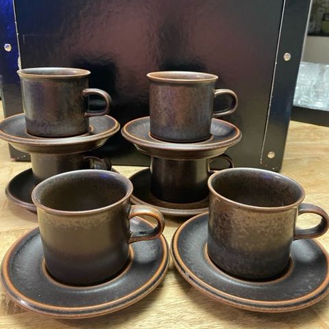 Myydään käytetyt Arabia Ruska-sarjan mokkakupit. Mokkakupin tilavuus on 100 ml. Itse käytin näitä espressokuppeina. Osassa kuppeja ja lautasia on kulunut Arabia-leima pohjassa (kts. kuva). Ei moitteita kunnossa.