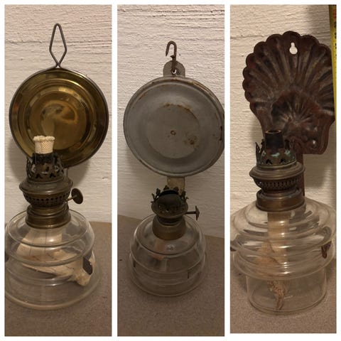 Hieman harvinaisempi öljylamppu 60 - 70 luvulta. Messinkinen erittäin painava runko jossa kaksi tasapainotettua poltinta = pysyvät aina pystyssä vaikka lamppu olisi hieman vinossa kuljetettaessa.