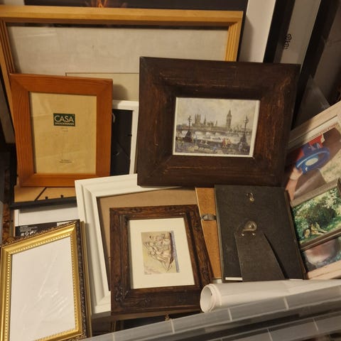 Kaunis Hannasin puinen kehys pupu-hahmolla. Ulkomitat 32x26cm. Kuvakoko ilman paspartuuria 18x24 ja paspiksella 13x18cm. Alareunassa pieni kolhu (näkyy kuvissa).