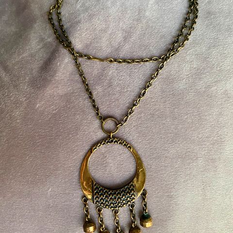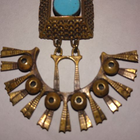 Pentti Sapanevan aivan upea, näyttävä pronssinen kaulakoru papuketjulla. Korun korkeus noin 8 cm ja ketjun pituus noin 70 cm. Leima P Sarpaneva.