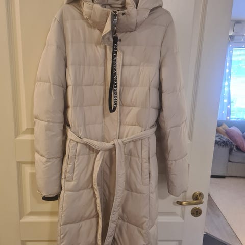 [Brändi] [Malli] Pitkä takki naisille. Takki on oranssi ja kokoa L. Se on suunniteltu tarjoamaan mukavuutta ja tyyliä viileämpiin päiviin.