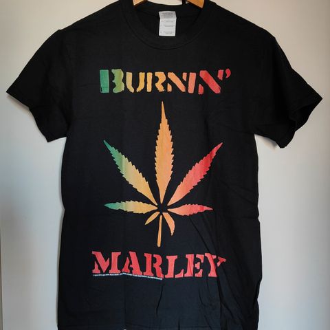 Musta Bob Marley t-paita, jossa etupuolella printti.