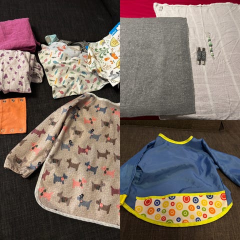 Ruokalappuja, kuolalappuja, bodyn jatkopala, hanskan pidikkeet, tuttinauha yms