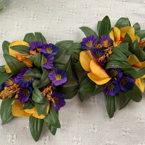 Keltaiset munanmuotoiset kynttilät, joissa vanhat pääsiäiskuvat. Ovat suurinpiirtein kansnmunan kokoiset. Nämä ovat vielä ikäisekseen hyvässä kunnossa. Pikkunaarmut ja hankaumat saa kiillotettu rätillä ja kuumalla vedellä.