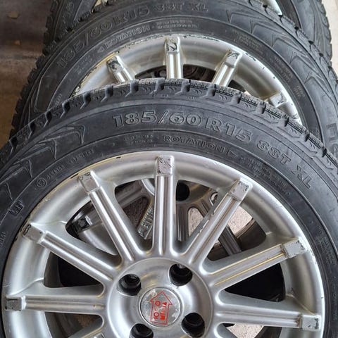 Kohtuu kuntoiset 185/60/15 nastarenkaat Gislaved Nord Frost200, joita on siis 2.